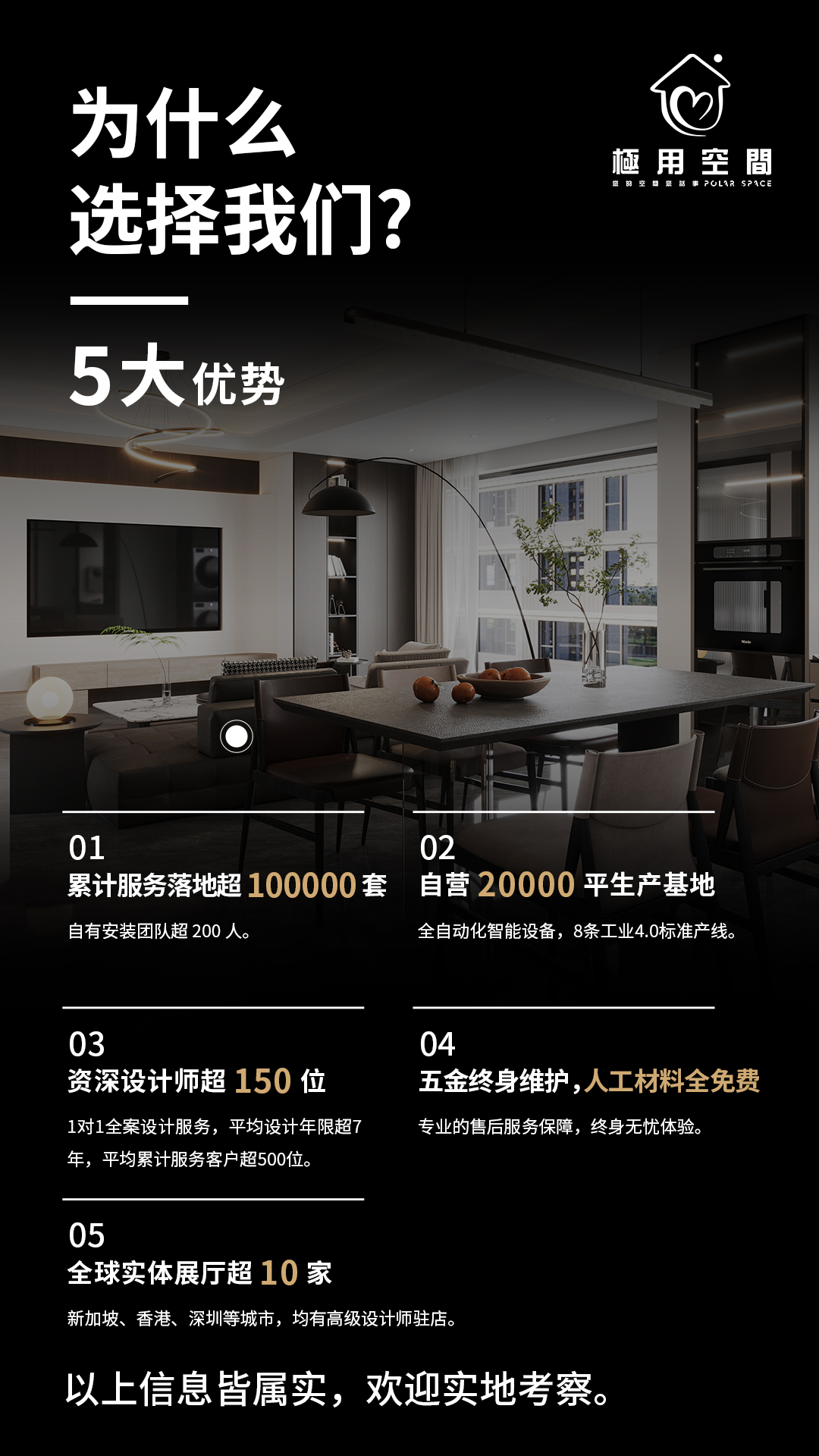 我們是源自香港定制傢俱的領先品牌,立足香港,服務整個粵港澳大灣區及新加坡,每個月有超過1100戶家庭的全屋定制傢俱在我們公司安裝落地。我們有:1,自營展廳超 10 家2,150+位高級設計師 3,超600人的服務團隊4,20000+平方智慧生產車間我們有:1,德國膠王PUR四面無縫封邊2,四大品牌五金 3,防撞角全方位包裝4,標準化運輸安裝售後服務